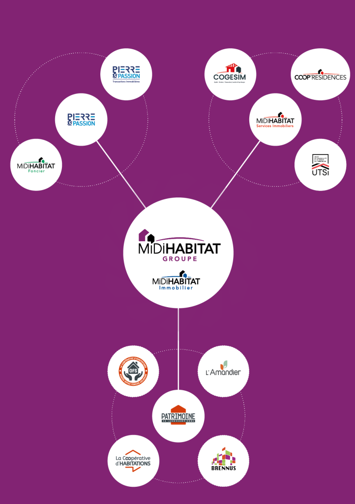 Membre du réseau national BATIGERE, le Groupe MIDI HABITAT est composé de 11 entités aux compétences variées permettant de répondre à tous les parcours résidentiels.